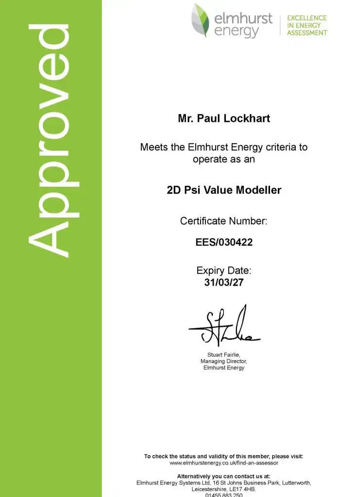 Congratulations to Paul Lockhart, Architectural Technologist in our Stirling studio, on achieving Elmhurst Energy accreditation as an Approved 2D Psi Value Modeller. It’s a great achievement and a valuable addition to our in-house capability.