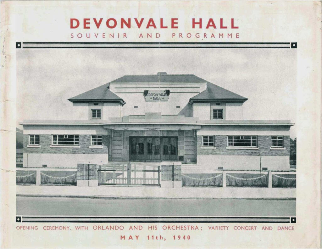 Devonvale Hall Completed: Arthur Bracewell designs Devonvale Hall in Tillicoultry as the social centrepiece of the mill village. The two-storey entertainment venue blends Art Deco and Neo-Georgian features and incorporates the Devonvale butterfly emblem in its facade.