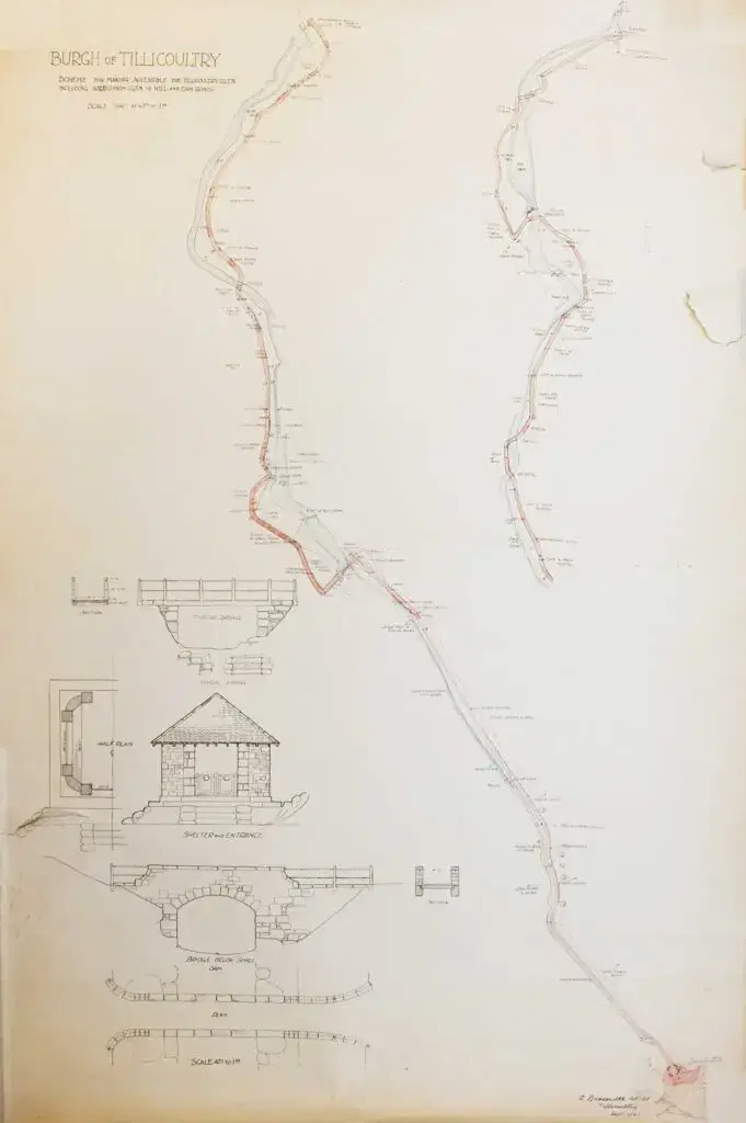 Tillicoultry Glen formally opened by Arthur Bracewell’s widow Mrs Janet Bracewell and commemorated by a plaque on the cairn at Glenfoot.