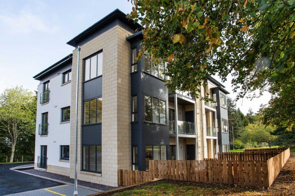 The Drummond Hill development transforms the former Scottish Rural College site into a carefully balanced mix of restored heritage buildings and new high-quality homes. At its heart is Drummondhill House, a Category B listed villa dating from around 1890, now sensitively converted into six apartments. The listed Gate House has also been restored and extended to form a family home, ensuring the historic character of the estate remains central to the scheme.