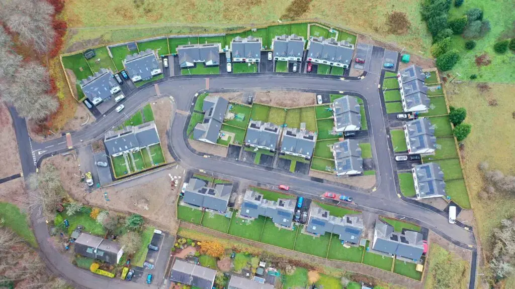 Bracewell was appointed by Highland Housing Alliance and The Highland Council to lead the design and delivery of a residential development at Kinellan Drive, Strathpeffer. The project delivers 42 new homes across a mix of social rent, mid-market rent, and homes for sale, carefully arranged to step along the site’s natural contours and integrate with the surrounding rural village character.