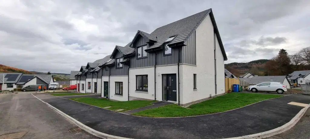 Extensive landscaping and tree protection measures were incorporated to safeguard the site’s environmental assets, while contributions to the community included enhancements to Strathpeffer Community Park and local school infrastructure. The development establishes a sustainable, high-quality residential environment that responds to both its physical and social context.