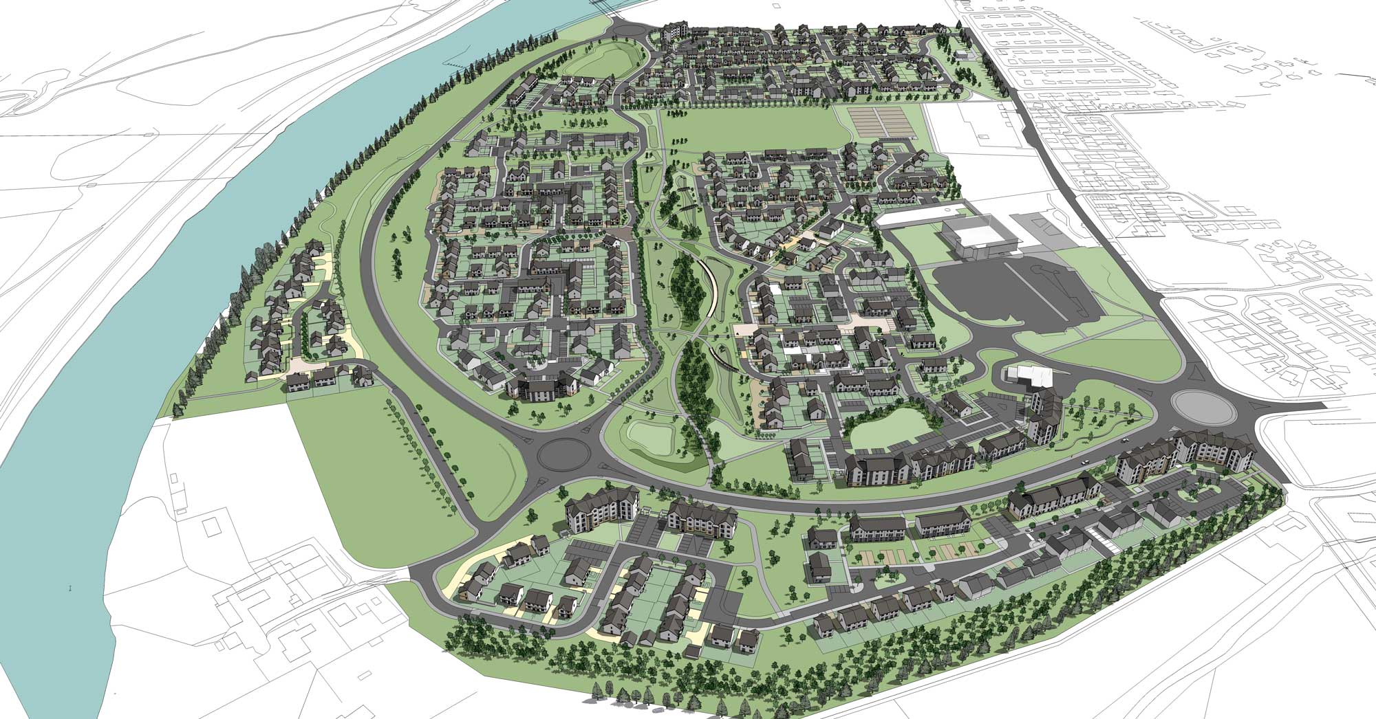 The Ness Bank redevelopment transforms a key brownfield and greenfield site overlooking the River Ness into a residential-led mixed-use neighbourhood of around 770 new homes. The masterplan establishes a connected urban framework that weaves together landscape, movement, and built form, creating a network of streets, green corridors, and public spaces that link naturally with the wider Torvean and Ness-side area, realising the city’s vision for a coherent and sustainable riverside community.