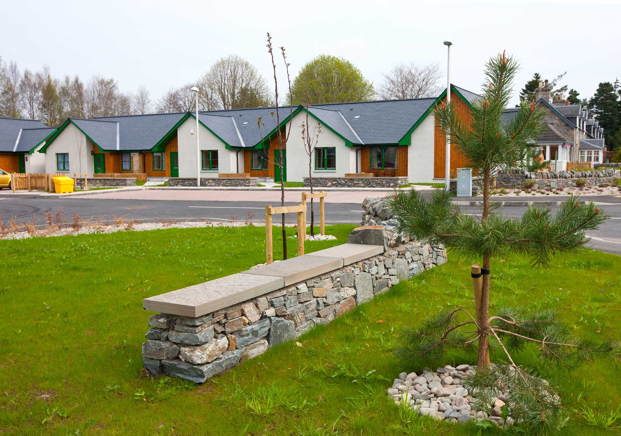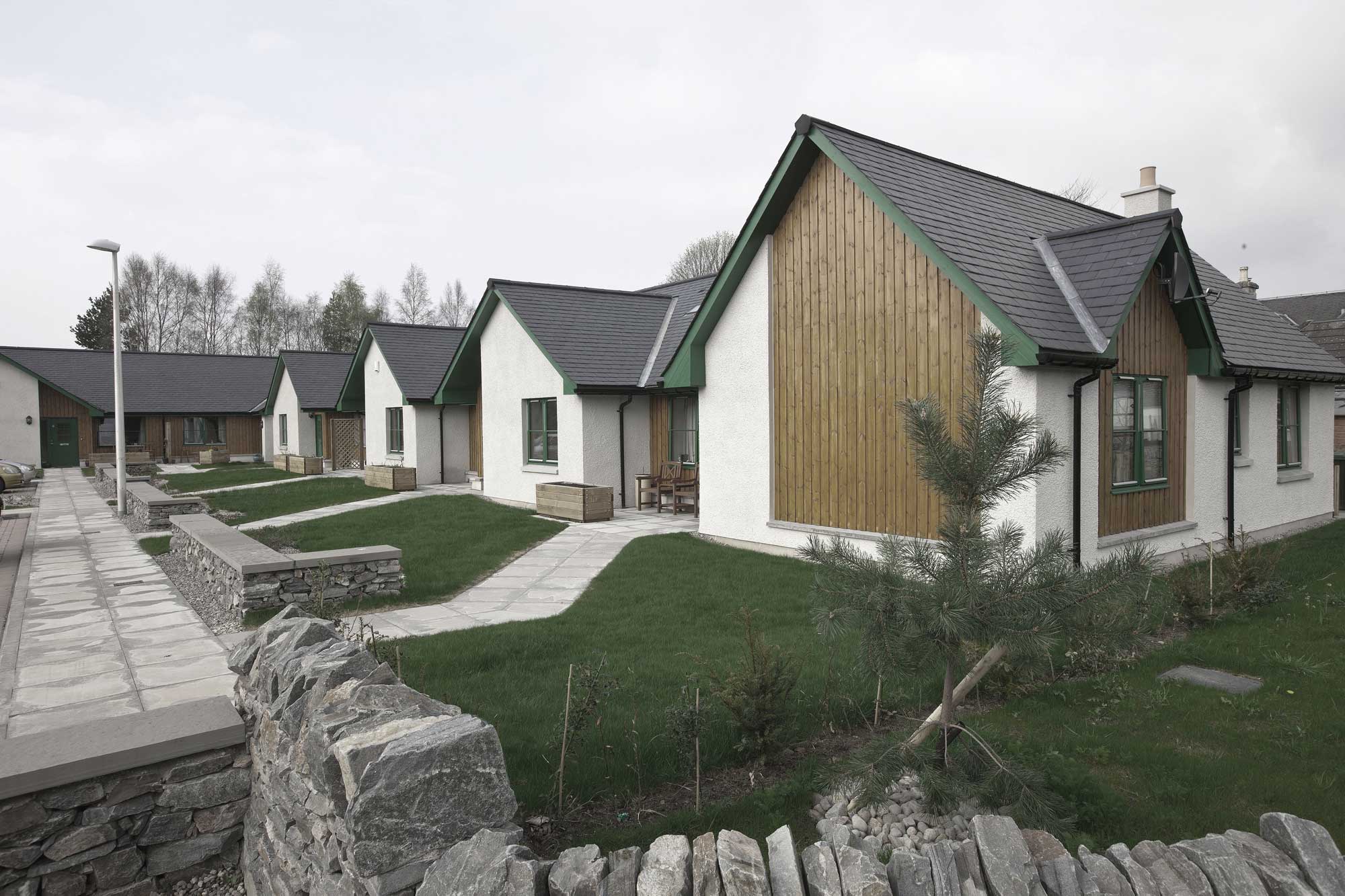 This development provides 13 amenity bungalows for older residents in Nethy Bridge, on a prominent village site long identified for senior housing. The design sought to respond sensitively to its central location, creating a place that feels both rooted in local tradition and supportive of contemporary living.